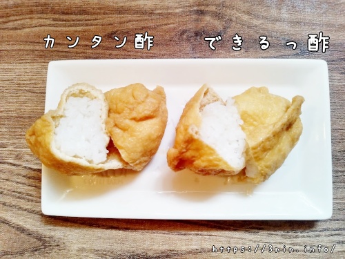 いなり寿司だと、お揚げが甘いので、酸味が強い「できるっ酢」を使った酢飯の方が私は好み。具材を上にのせるちらし寿司にすると、あまり2つの味に違いは感じられませんでした。